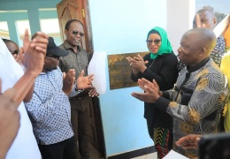 Naibu Waziri wa Afya Dkt Godwin Mollel akizindua Kituo cha Afya Kindimbachini kilichopo katika Kijiji cha Kindimbachini Kata ya Muungano Halmashauri ya Wilaya ya Mbinga t...