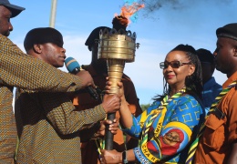 Kiongozi wa Mbio za Mwenge wa Uhuru Ndg. Abdalla Shaib Kaim a...