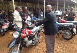 MKUU WA WILAYA YA MBINGA MH. COSMAS NSHENYE AMEONGOZA ZOEZI LA KUWAKABIDHI MAAFISA ELIMU KATA PIKIPIKI ZA SERIKALI KATIKA OFISI ZA MKURUGENZI MTENDAJI LEO TAREHE 30/07/2018